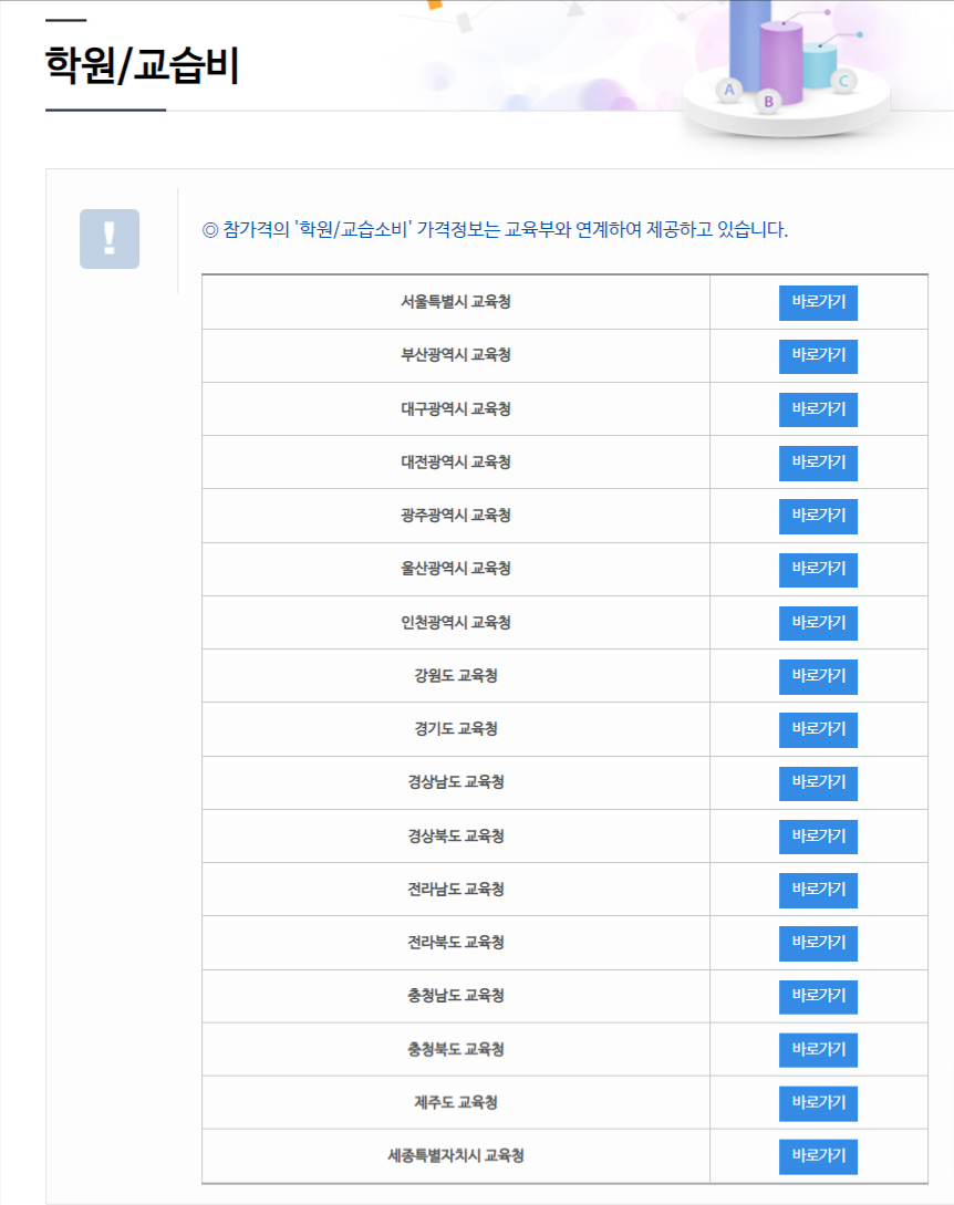 직접 학원에 전화하지 않아도 학원비를 쉽게 알 수 있는 방법이 있습니다.